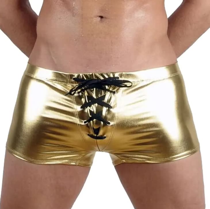 Трусы-шорты мужские "Gregi" со шнуровкой из материала Wetlook золотистые