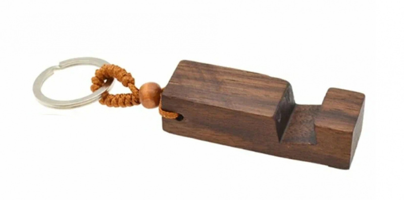 Брелок-подставка для телефона 2 в 1 деревянная темная