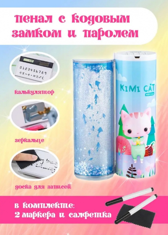 Пенал "Кошка Кими" с кодовым замком с паролем с блестками
