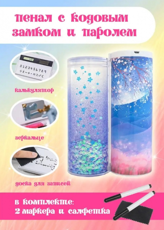 Пенал школьный с кодом и калькулятором, идеально на подарок детям и подросткам! Вместительный для канцтоваров.