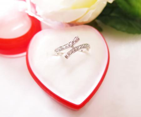 Тонкое серебристое кольцо украшено фианитами.