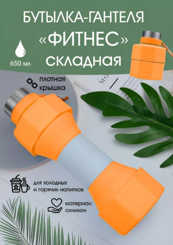 Бутылка-гантеля "Фитнес" силиконовая складная