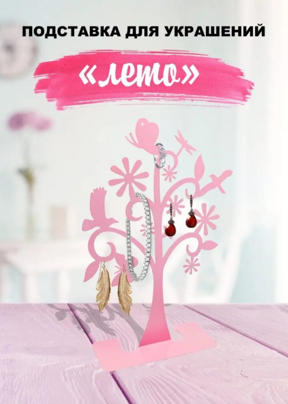 Подставка для украшений "Лето" в вид дерева с декоративными элементами такими как листья, птички, бабочки, цветочки - это интересное и оригинальное решение для хранения всевозможных украшений, а также для их демонстрации.