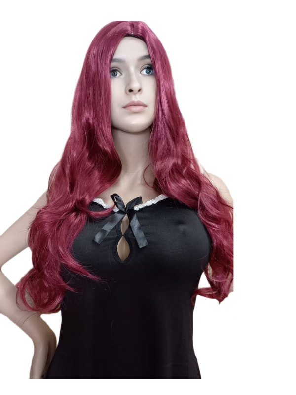 Парик с длинными вьющимися волосами,цвет гранат
