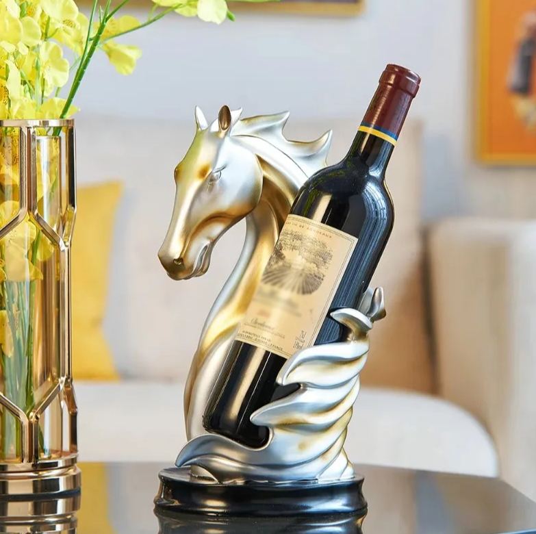 Это оригинальная подставка для бутылки в форме головы лошади. Подставка изготовлена из смолы и сочетает в себе практичность и эстетичность.