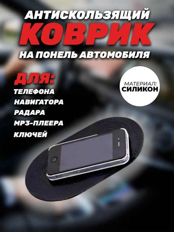 Хит продаж среди полезных подарков! Этот уникальный коврик крепится на торпеду авто и удержит мобильный телефон, любые мелкие предметы, навигатор, радар, MP3 плеер! Причем угол наклона может быть любой, этот коврик удержит предметы даже будучи прикрепленным вертикально! Не верится? Попробуйте сами! Коврик можно использовать не только в автомобиле, но на столике в поезде, в самолете и в других случаях практически на любых поверхностях! Удивительный, полезный и недорогой подарок и для мужчин, и для женщин! Суперпрочный, суперфункциональный! По мере попадания грязи на коврик, его можно промыть теплой водой с мылом, и он полностью восстановит свои функции!