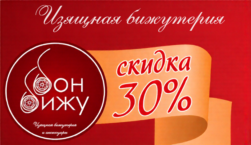 Скидка 30% на всю бижутерию.